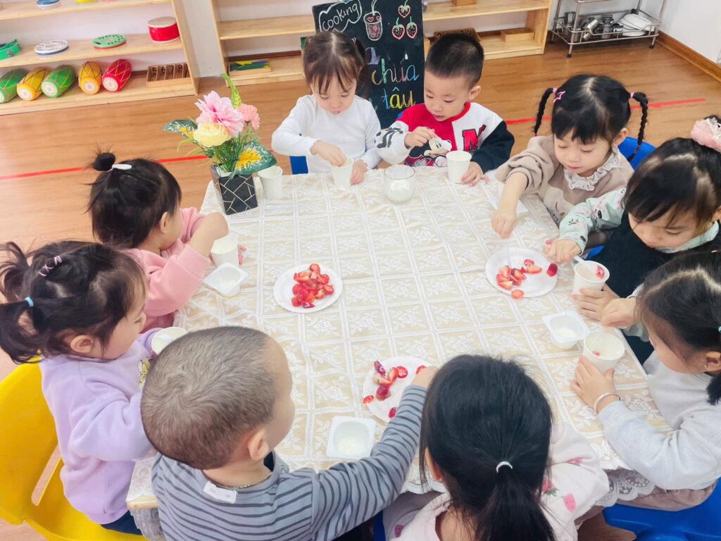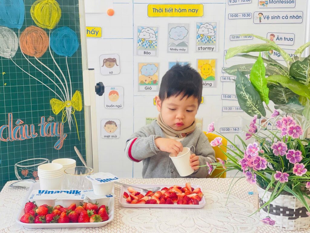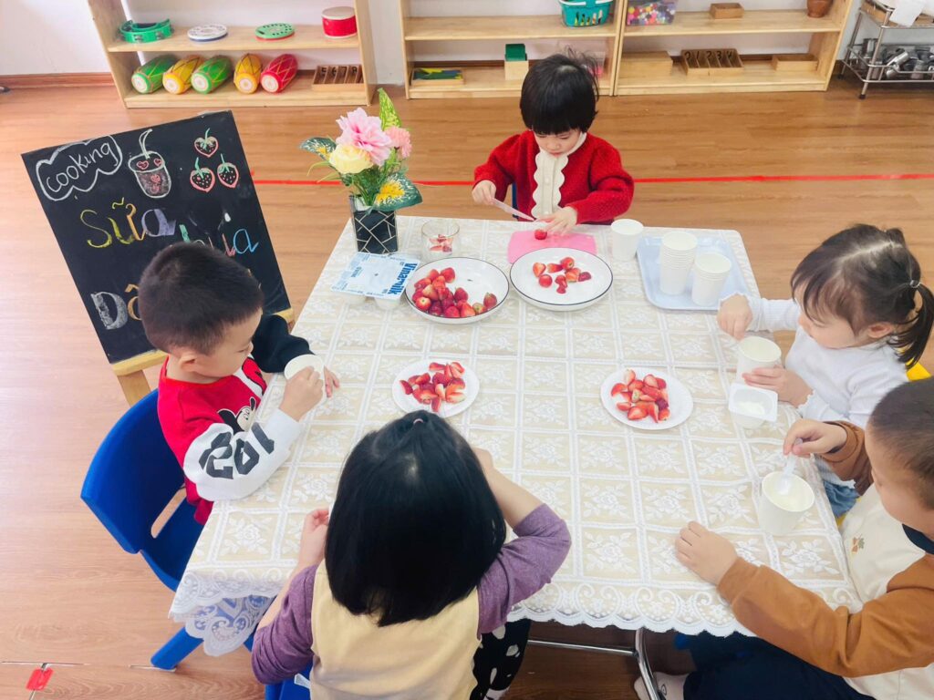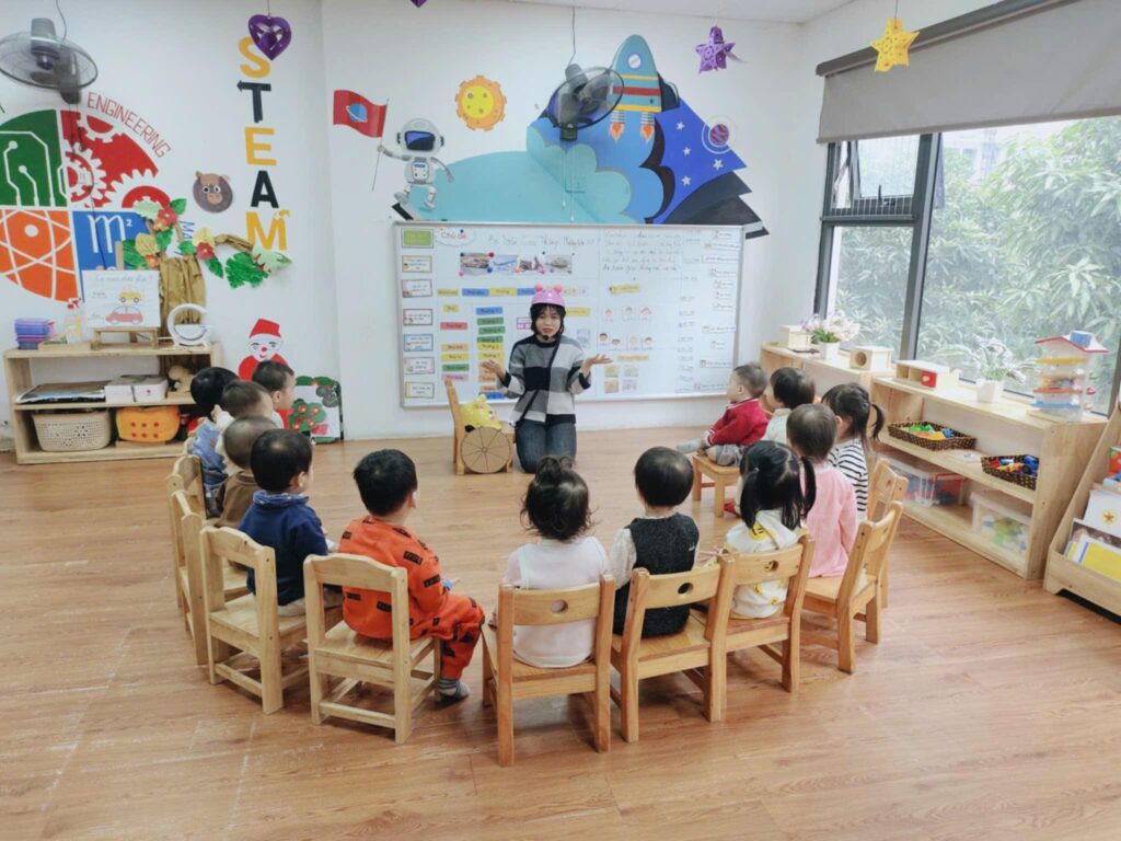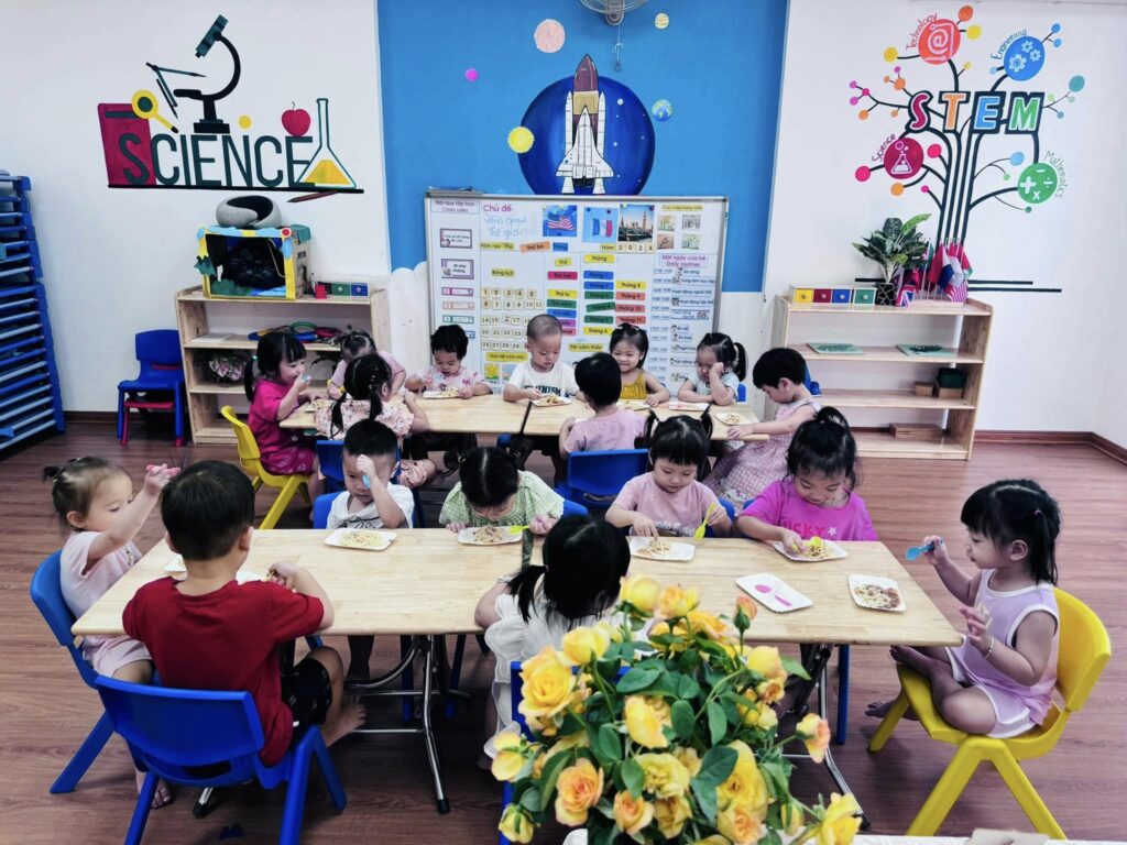 Kết hợp phương pháp Montessori, Reggio Emilia và chương trình Việt Nam, giúp bé phát triển toàn diện.
